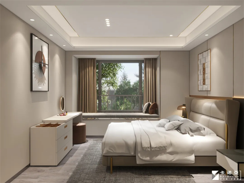 臥室的設計更注重舒適度與功能性,集睡眠、梳妝、收納於一體,步步皆優雅,打造五星級酒店般的居住體驗。