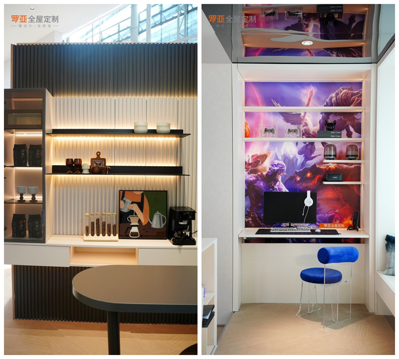 由於生長環境不同,他們對家的定義也完全不同。在他們看來,家已經不止是一個睡覺吃飯的地方,也是社交、辦公、娛樂的場所,是這屆年輕人生活方式的全麵載體。羅亞全屋定製對於產品力的構建,就是回歸年輕消費群體深層次的需求,以主題場景、生活方式重構Z世代的時尚家居。這次展會展示的“咖啡時光、心靈療愈、萌寵樂園、怡樂花藝、文創閱讀、悅動生活”等多個主題場景,展示年輕人熱愛的生活方式,除了視覺感官的愉悅,還滿足情緒感受,是羅亞全屋定製洞察年輕消費者的代表作。