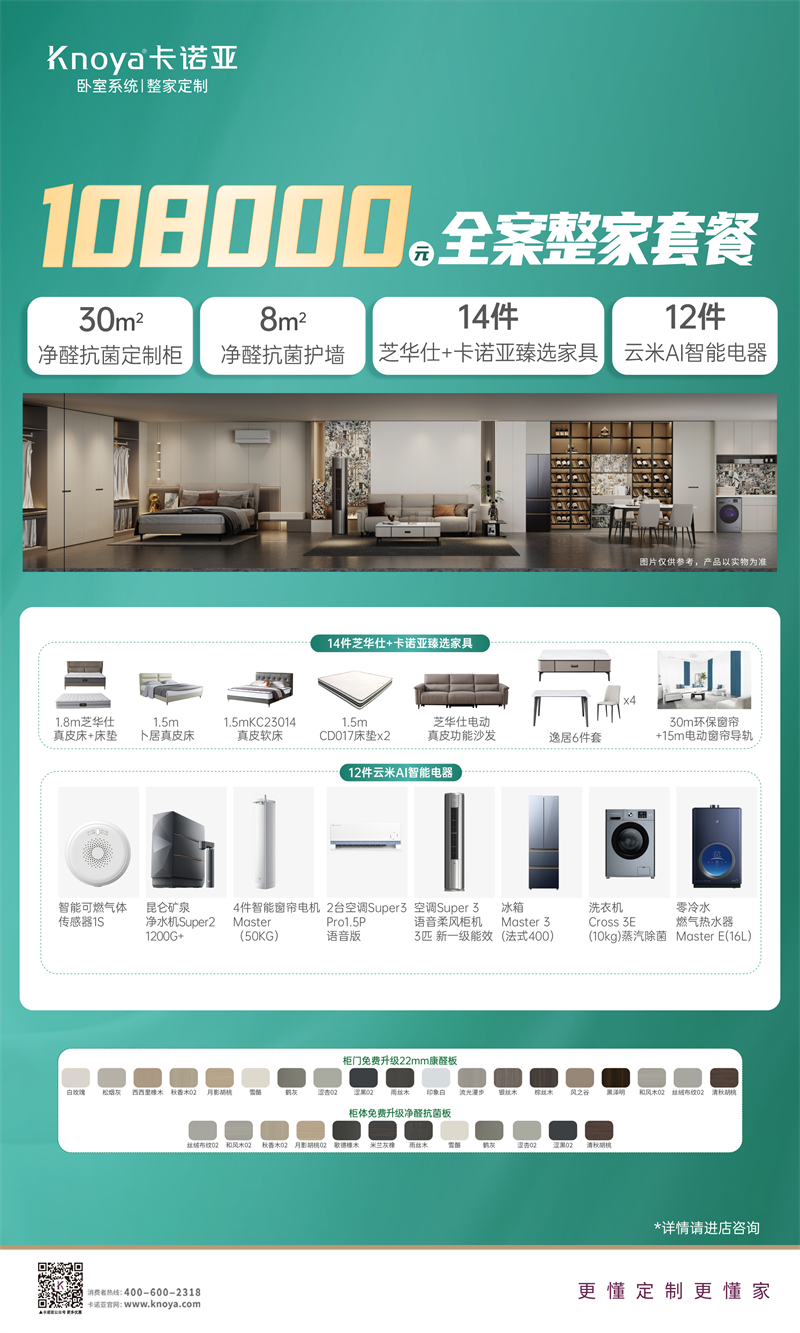 隨著國家新一輪“以舊換新”政策的深入推進,家居市場迎來新一輪消費熱潮。315消費者權益日+國補政策+品牌優惠的三重加持下,成為消費者更新家居、提升生活品質的絕佳時機。91看片软件下载響應政策號召,於3月1日-31日開展“煥新 315·國補更優惠--政企雙補至高 20%”钜惠活動,重磅推出59800元全屋升級淨醛抗菌家套餐、108000元全案整家套餐及係列臥室係統套餐,專為追求品質生活和改善型家裝的業主量身定製,為其提供更高端產品、更多大品牌、更高階體驗,以更優配的全案家居智能生活場景解決方案,輕鬆實現其家居煥新夢。