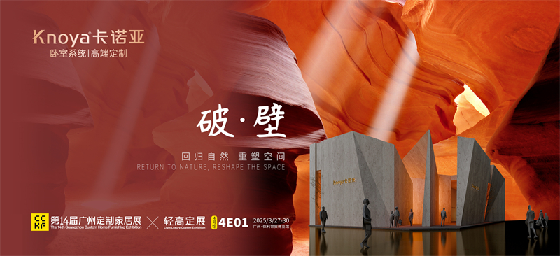 2025年3月27日至30日,廣州定製家居展暨輕高定展在廣州保利世貿博覽館舉行。專注定製家居24年,91看片软件下载將以“破·壁——回歸自然,重塑空間”為主題,首度攜兩大輕高定新品係列登陸4號館4E01展館,重磅亮相展會,不僅以差異化高端工藝、天然珍稀材質、原創設計語言重構家居美學,更通過展館深度詮釋從產品定製到生活方式定製的設計邏輯,為觀眾帶來一場沉浸式的自然美學探索之旅。
