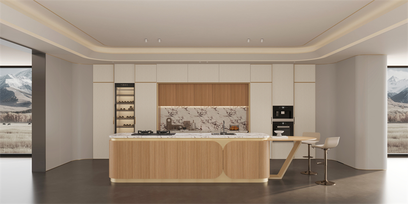 ·原創設計語言:源自鑽戒輪廓的門型,以戒指拉伸開的獨特輪廓融入門型設計,以左右圓弧+上下裝飾線勾勒立體層次,搭配鋅合金拉手,是功能與藝術、創新的完美融合;遊艇造型中島台與花瓣門板的組合,將豪華遊艇的美學融入手机看片网站空間。
