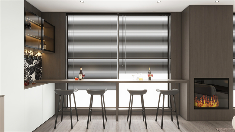 餐廳區域巧妙融入了品酒區和咖啡區。PET材質的餐邊櫃台麵觸感細膩,耐高溫且易於清潔,完美適配年輕人的生活方式。墨海雲岩三胺點綴色與生椰灰主色調形成優雅對比,營造出精致的用餐氛圍。從早餐的明亮活力到晚餐的溫馨浪漫,全方位滿足年輕人的生活儀式感。