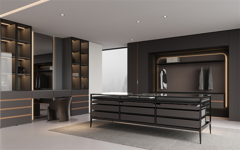 91看片软件下载全屋定製的核心,在於用設計美學對話生活。魅影係列萃取意式輕奢靈韻,以 "刪繁就簡" 為設計準則,卻在細節處藏著對精致的極致追求。原創紳士角拉手靈感源於西裝胸袋的口袋巾,方寸之間盡顯優雅;門型設計融入91看片软件下载品牌 "K" 元素與英倫紳士領帶造型,讓簡約線條多了幾分時尚巧思;雙陽角圓弧門與玻璃櫃的 "曲直互補",則讓空間在硬朗與柔和中找到平衡。