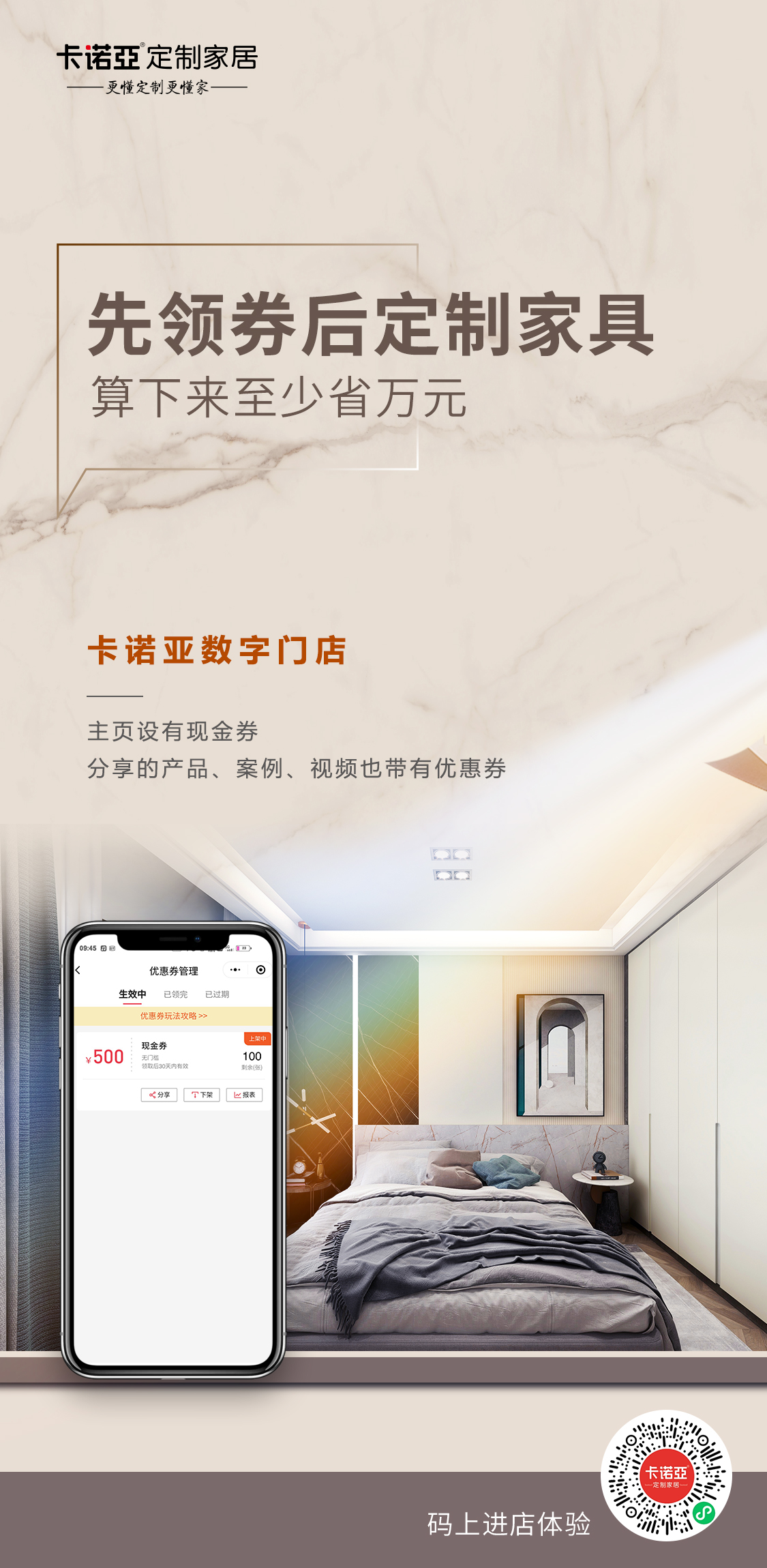 每逢節假日,建材家居市場各大門店促銷活動硝煙彌漫。五一、國慶中秋小長假,正逢裝修高峰期,像91看片软件下载這樣的一線定製家居品牌,都會利用線上數字門店發起各式各樣的活動,賦能經銷商門店,而優惠券就是門店使用最頻繁的營銷工具之一,靠它玩轉微信營銷,實現社群裂變。但是,一張小小的電子優惠券,使用起來還是大有學問呢。