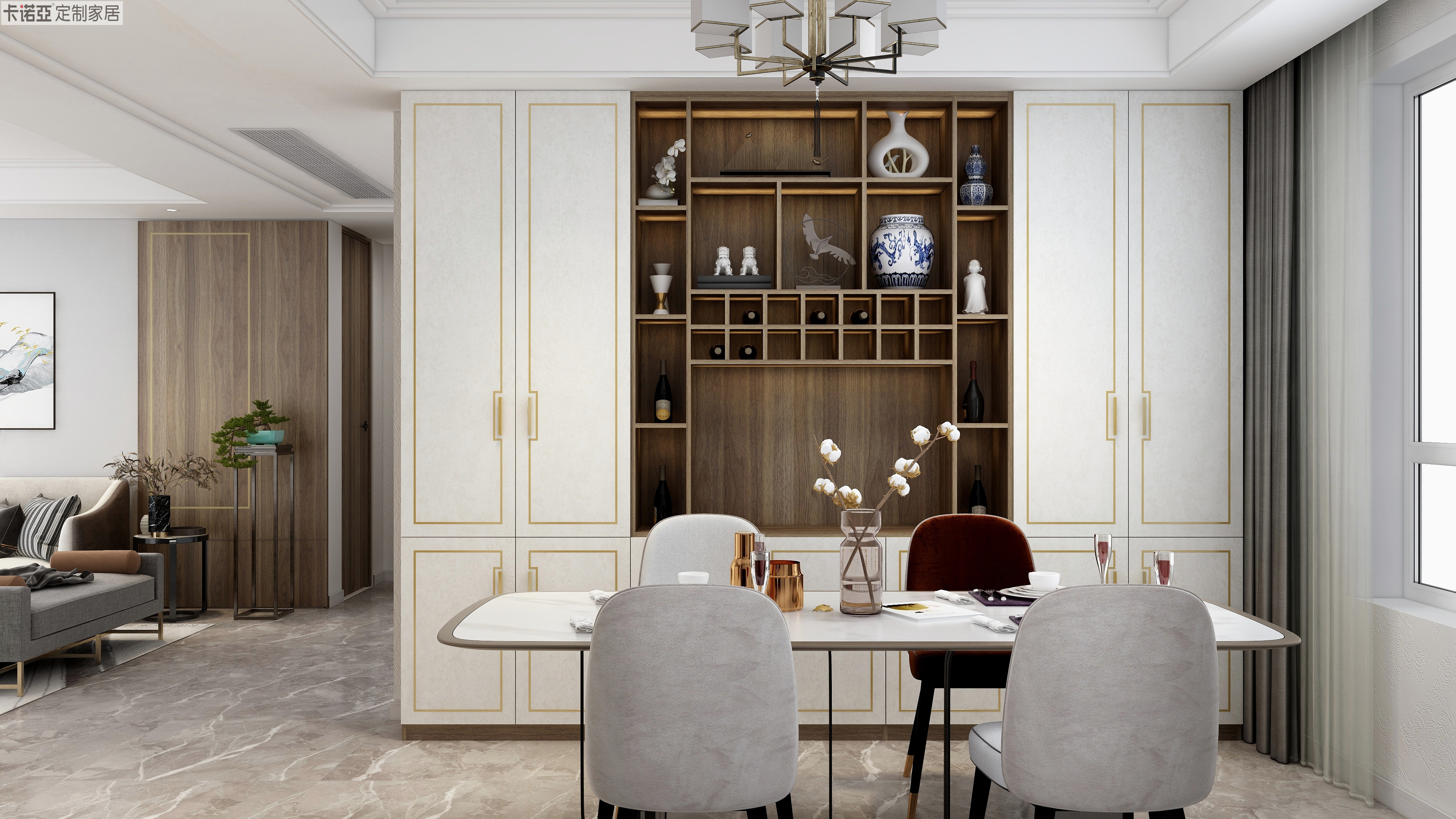 流金溢彩係列,整體設計不繁瑣,不重色彩的濃烈而重線條的表達,以局部的細節彰顯空間獨特的韻味和文化厚度,形成傳統與現代元素和諧共生的新中式空間。流金溢彩係列點睛之筆在於門板、護牆板、抽麵采用內嵌式回紋型金屬條,一改門板平麵單一的刻板印象,滿滿的輕奢高級感撲麵而來。