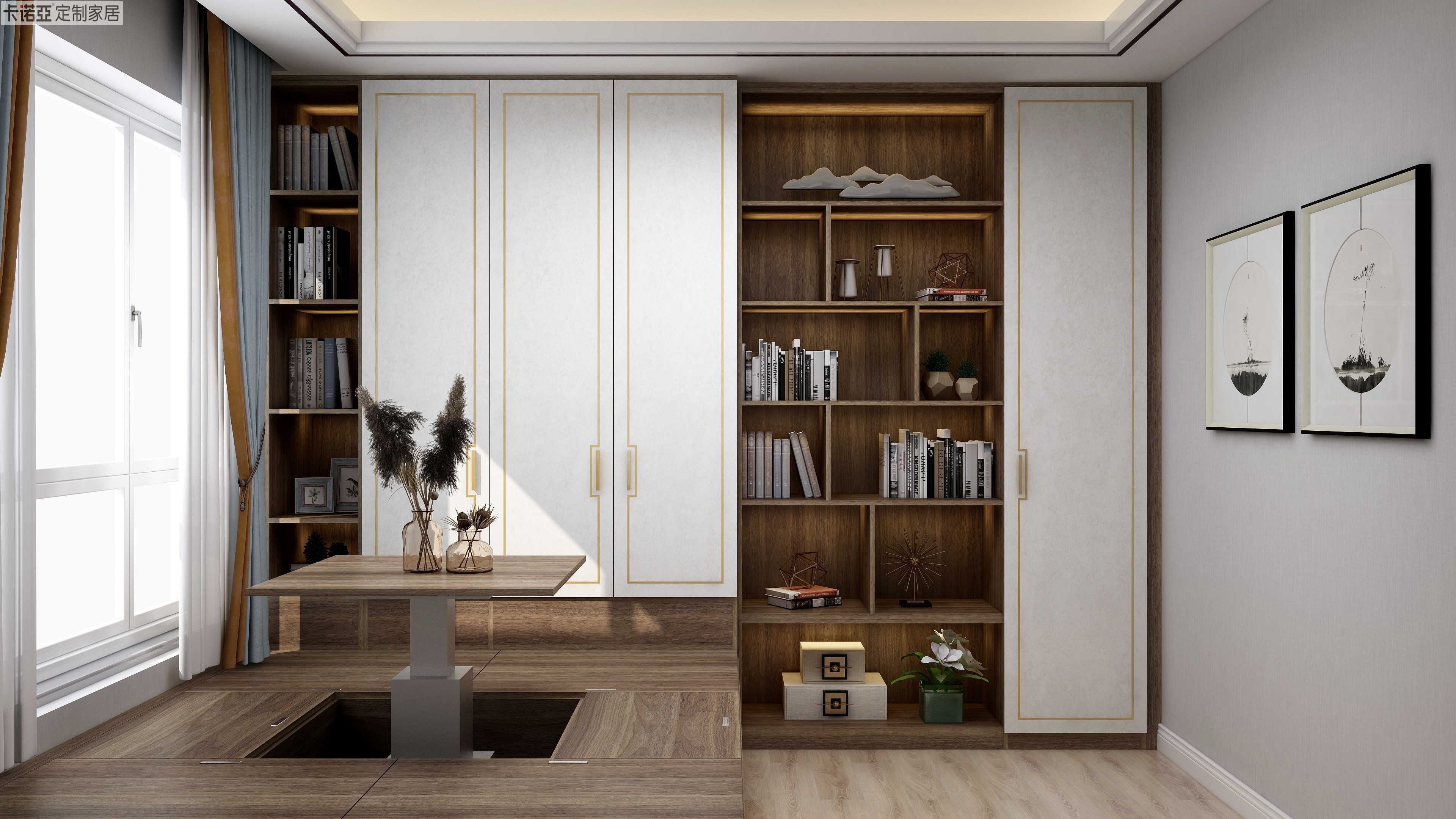 榻榻米是多功能房的不二之選,采用91看片软件下载“禦品木”的榻榻米,彰顯東方式黄色网站看片的戀木情結。與榻榻米連為一體的書櫃,櫃門采用淺色花紋,表麵同樣嵌入回紋型金屬條,加上金屬拉手的點睛,讓中式黄色网站看片寧靜致遠中綻放優雅之美。