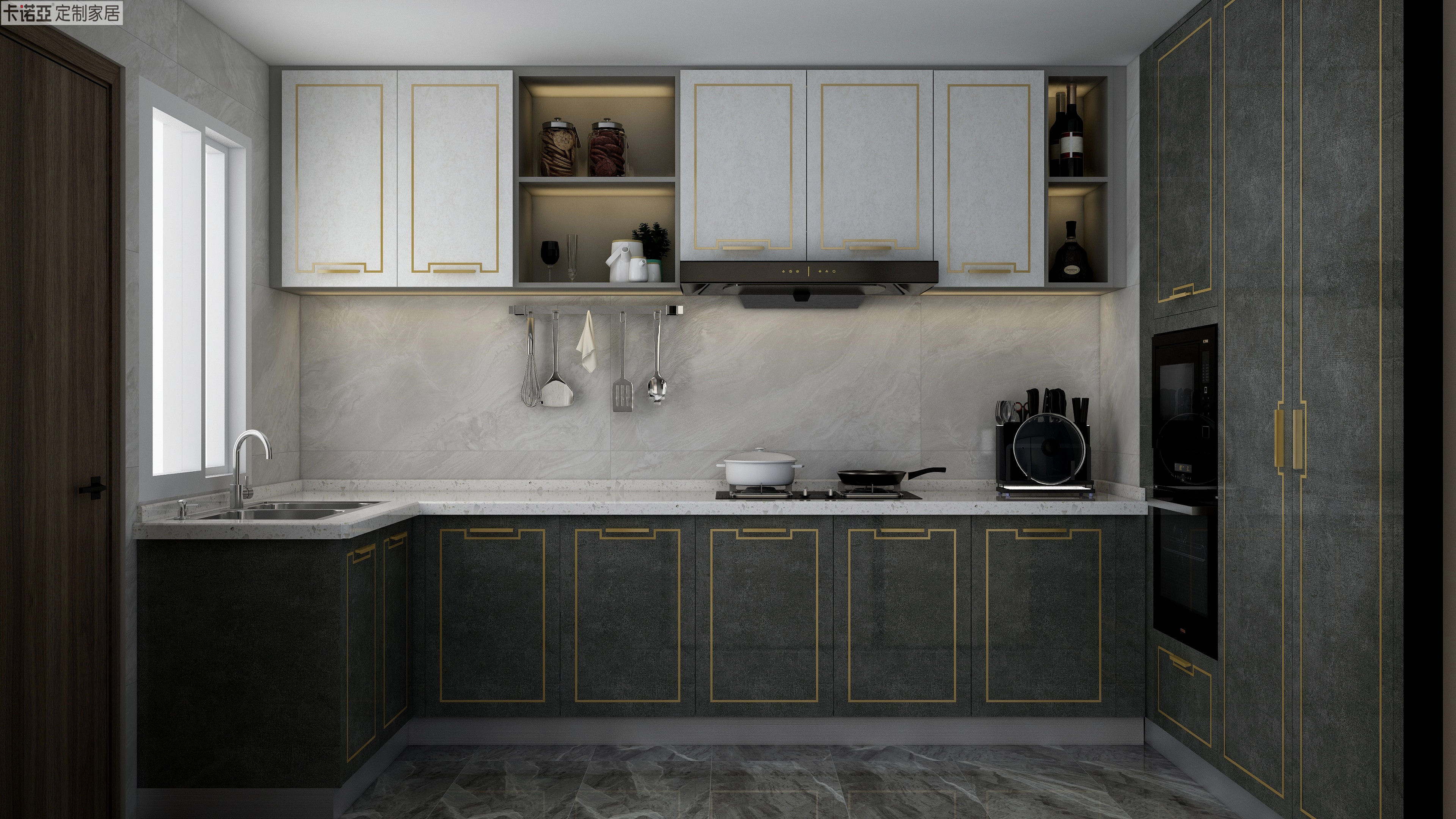 君子遠庖廚,當代君子則樂於下廚。吊櫃地櫃一明一暗的撞色設計,讓手机看片网站多了一份視覺層次之美,表麵同樣嵌入回紋型金屬條,高端手机看片网站呼之欲出,在這樣的唯美空間一展廚藝,何樂而不為?